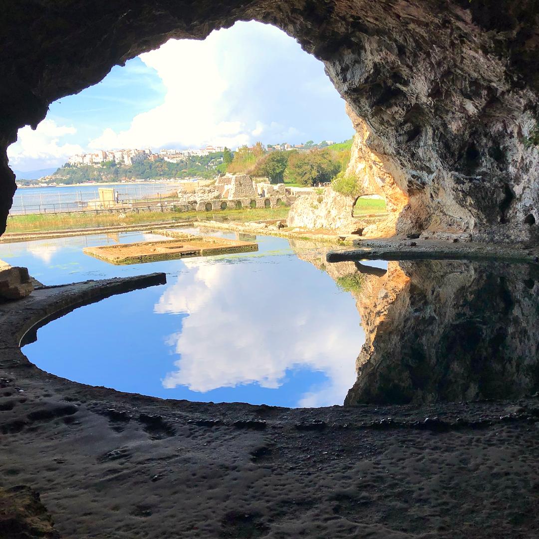 Inside the cave, Tiberius built a large circular basin surrounded by a platform for walking, connected to another rectangular basin that extended outside.