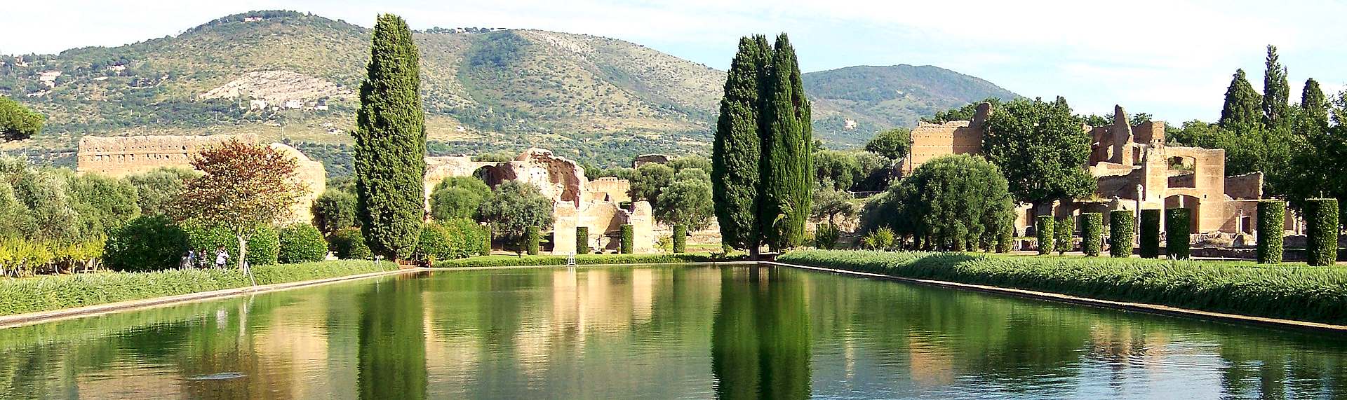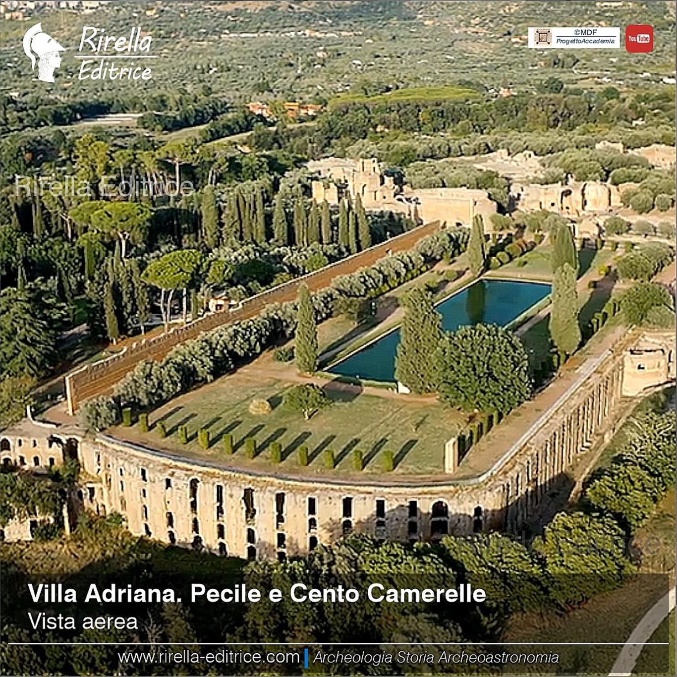 Il lunghissimo muro che s’incontra all’inizio della visita di Villa Adriana appartiene al Pecile: era vasto un giardino circondato da portici con un bacino d’acqua al centro, nel quale si riflette il paesaggio.