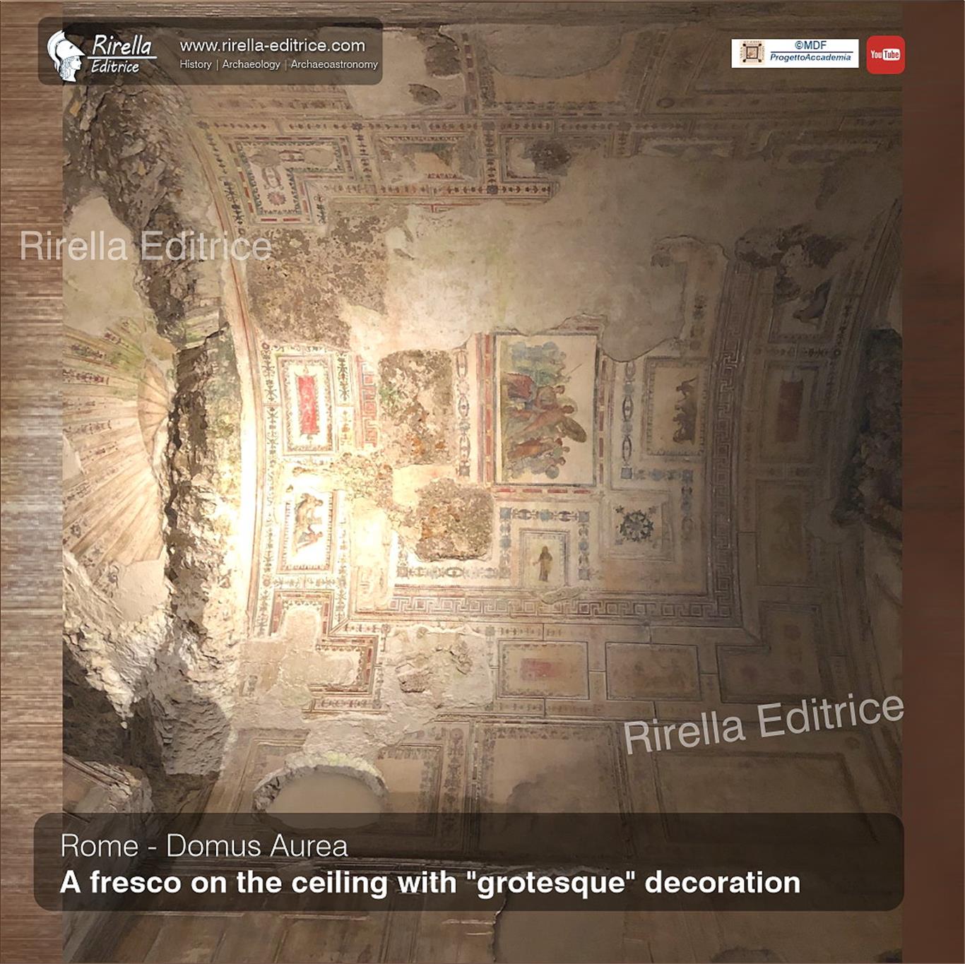 «in the rest of the building everything was covered in gold and covered with precious stones, shells and pearls; the ceilings of the dining rooms were made of movable ivory tablets." (Suetonius, Nero, 31). The fresco with golden columns decorated with precious stones in the Villa di Poppea in Oplontis, wich was built at the same time, give an idea of its appearance.