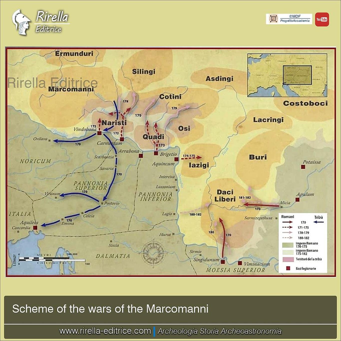 Another front also opened to the north: in 166 AD. the Danube was crossed by powerful and Germanic warrior tribes who intended to settle within the borders of the empire because they in turn were pressured by other nomadic peoples. In 169 Lucius Verus died suddenly in Altino. In 170 AD the Quadi and the Marcomanni inflicted harsh defeats on the Romans, destroyed Oderzo and went so far as to besiege Aquileia.