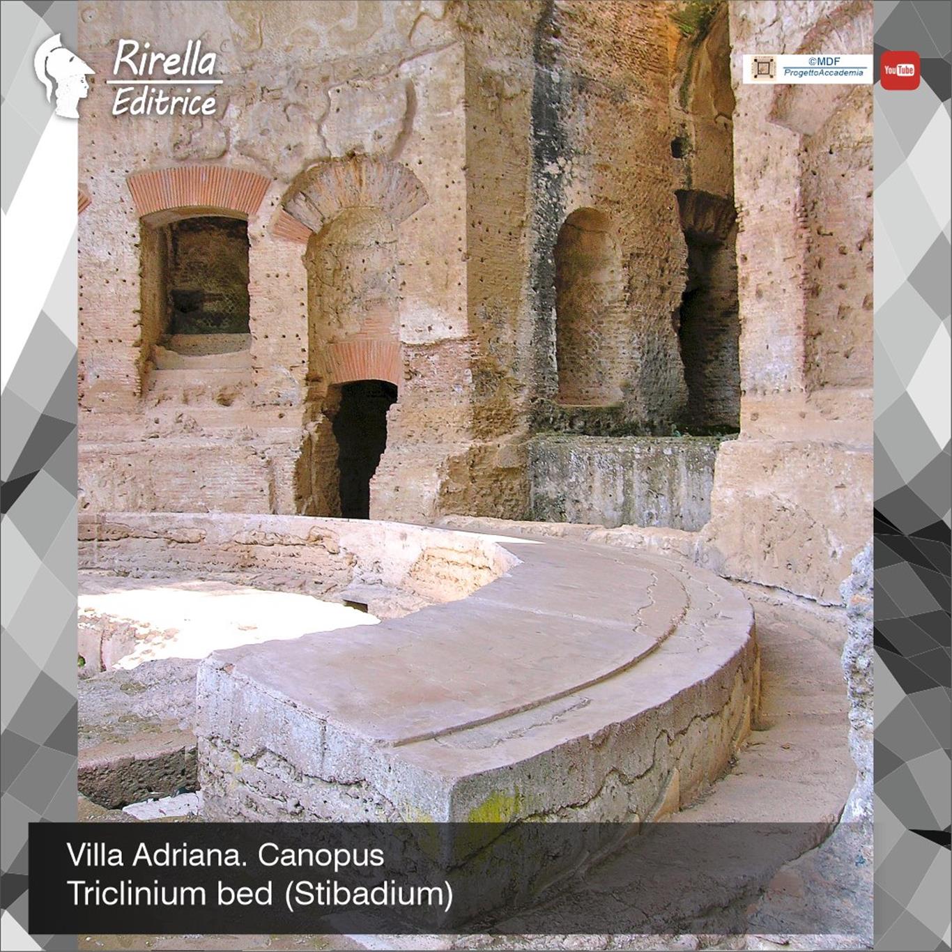 At the center of the triclinium opens the so-called Antrum a sort of grotto, which goes into the hill and is partly covered by a barrel vault. There, in a dominant position, the emperor Hadrian took his place with his most important guests. The position was the same of a royal box in terms of acoustics and sight.