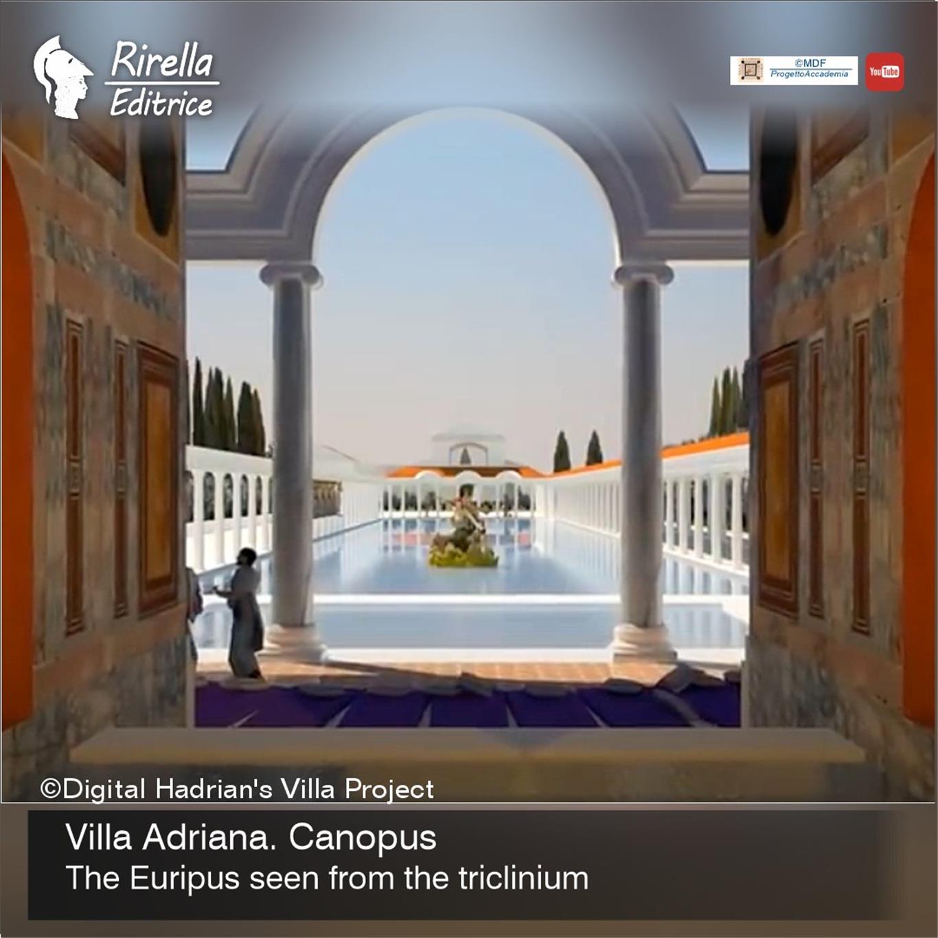 At the end of the Euripus canal stands the so-called Serapeum, whose main hall – visible from afar – was a sort of artificial grotto in the shape of a semicircle, covered by an umbrella semi-dome, typical of Hadrian's architecture, and in particular of Hadrian's Villa.