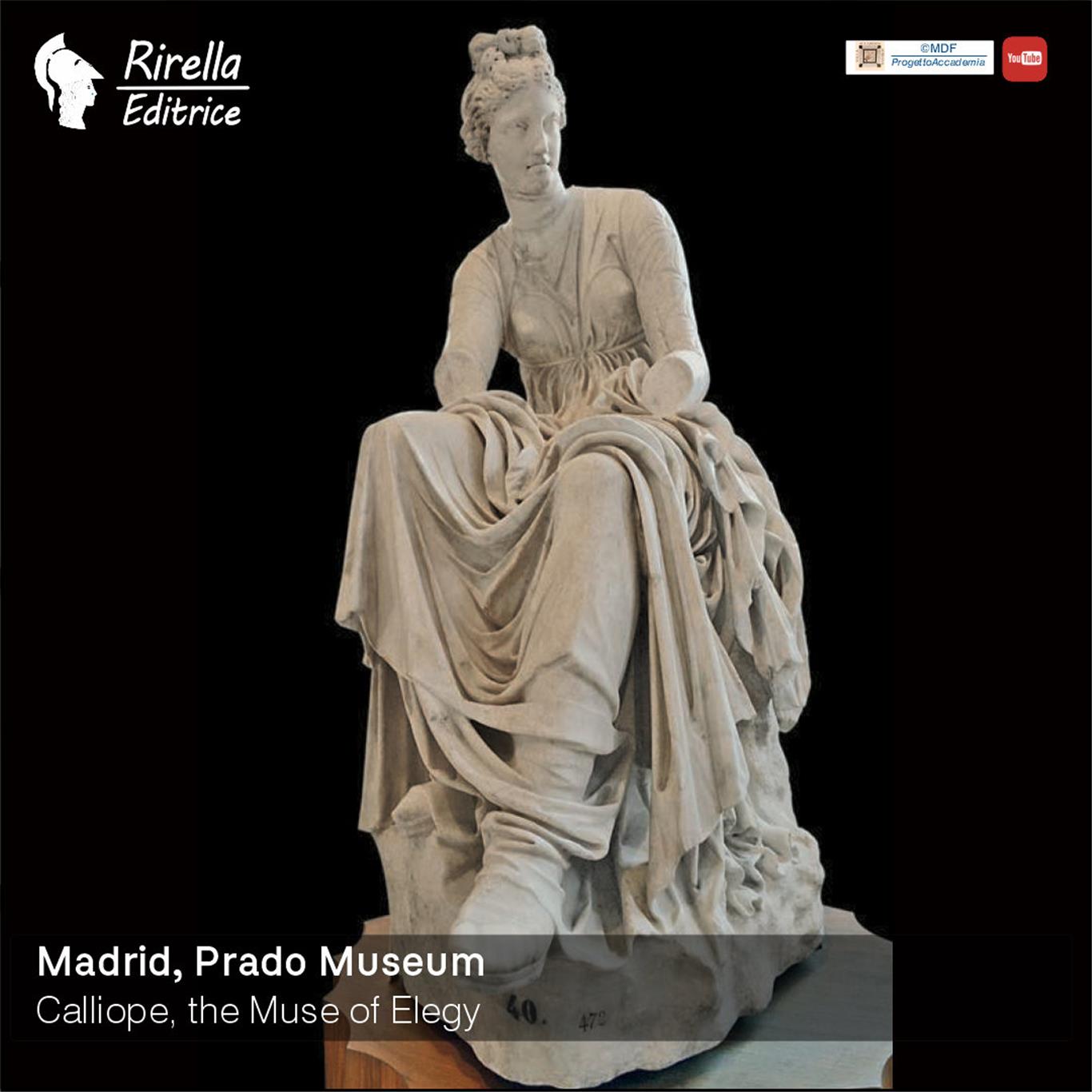 Clio was the Muse of History and epic song, depicted seted with a parchment in her hand; Urania was the Muse of Astronomy; Melpomene and Thalia were the Muses of Tragedy and Comedy. Terpsichore was the Muse of Lyric, holding the lyre; Erato was the Muse of Love Poetry, also depicted with the lyre; Calliope was the Muse of Elegy, Euterpe of Music and the sound of the flute, and finally Polyhymnia was the Muse of Dance and sacred songs.