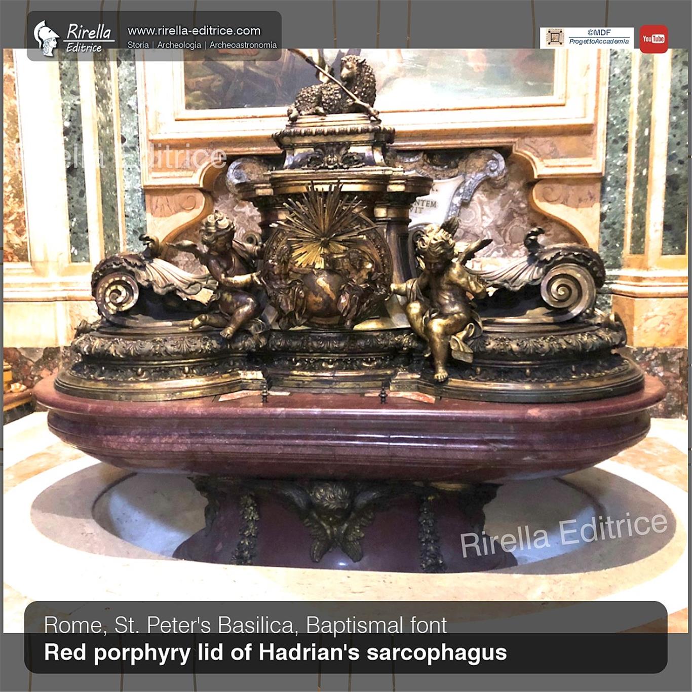 Only the lid remains, which in the seventeenth century was transformed into a Baptismal font by Carlo Fontana, and today is in St. Peter's Basilica.