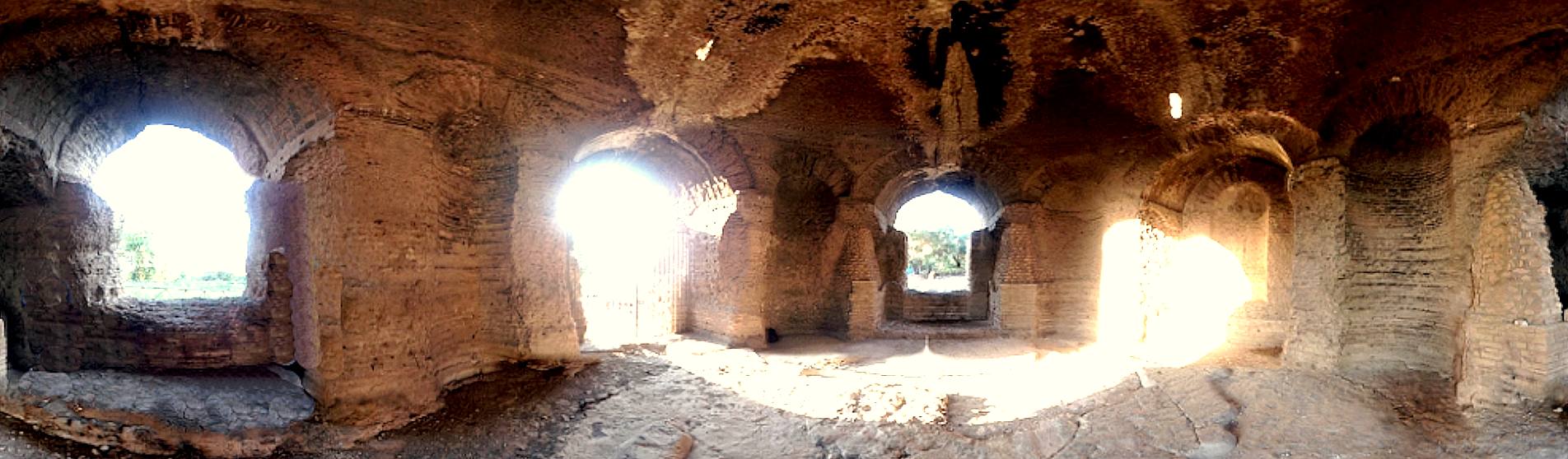 Al piano inferiore vi è una grande sala circolare – nove metri di diametro – coperta da una cupola chiusa. Nella sala si entra dalla porta principale dell’edificio, sopra la quale si vede una finestra rettangolare ‘a bocca di lupo’ (come nei castelli medievali), che all’interno diventa una stretta feritoia.