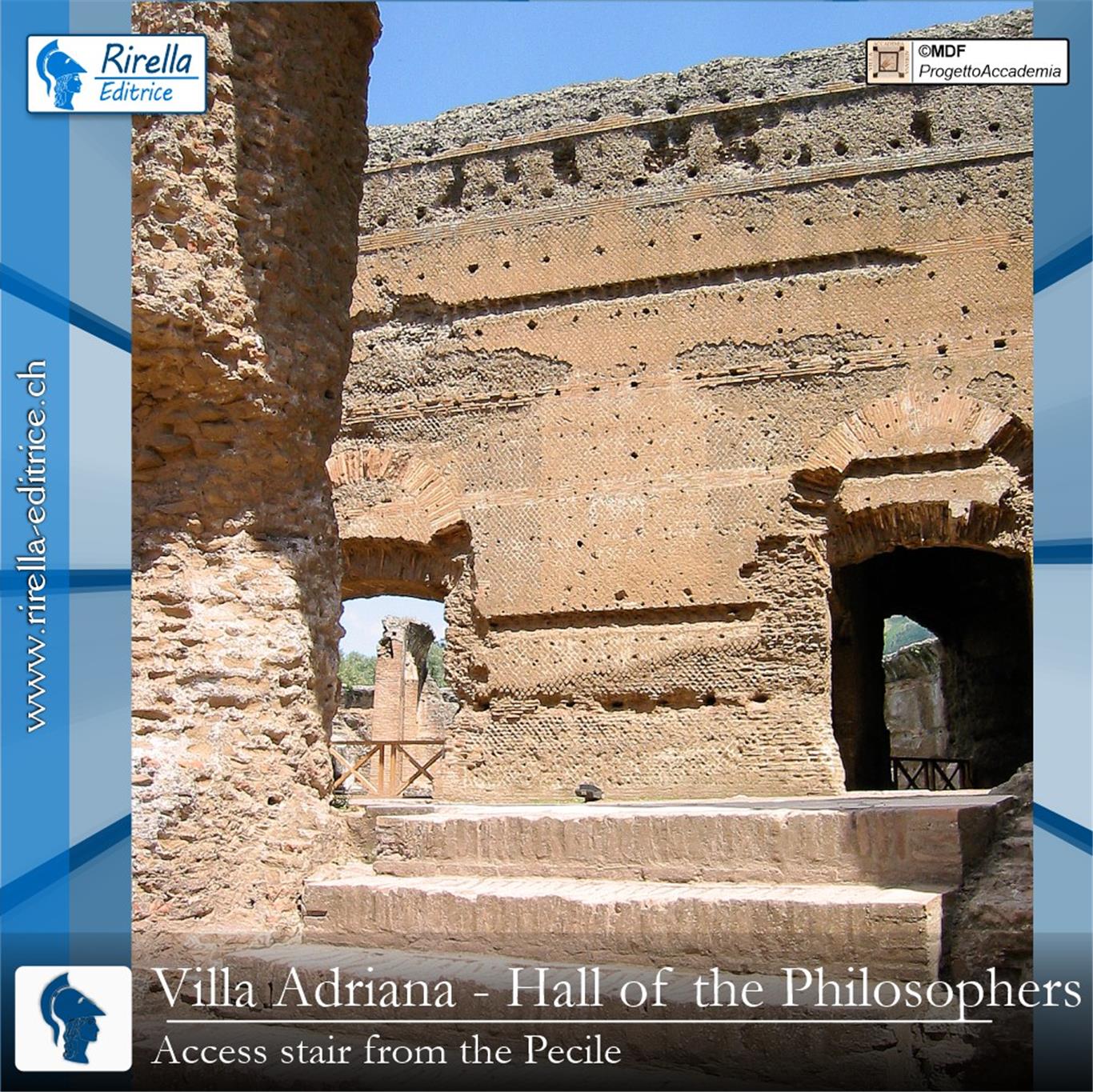 ✅ The double porch of the Pecile ends with a curved wall from which two stairs go up to one of the most imposing rooms of the Villa, the Hall of the Philosophers (or Sala dei Filosofi). It is a large rectangular room with an apse at one end, with seven niches for statues.