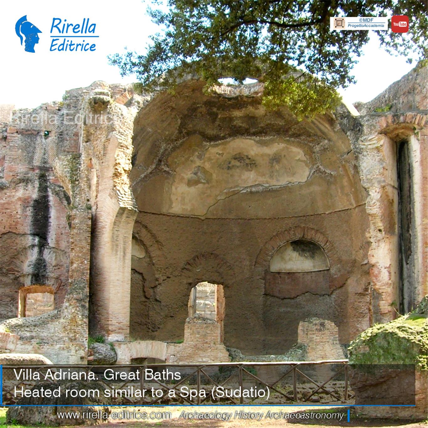 These features are present in the Great Baths of Villa Adriana. First of all, there is a large rectangular Palestra (Gymnasium) paved with herringbone bricks (opus spicatum). Then there is the Frigidarium, with two large cold water pools, once cladded in white marble. On the outside there were several heated rooms, among which the circular «sauna" (Sudatio) covered by a dome stands out.