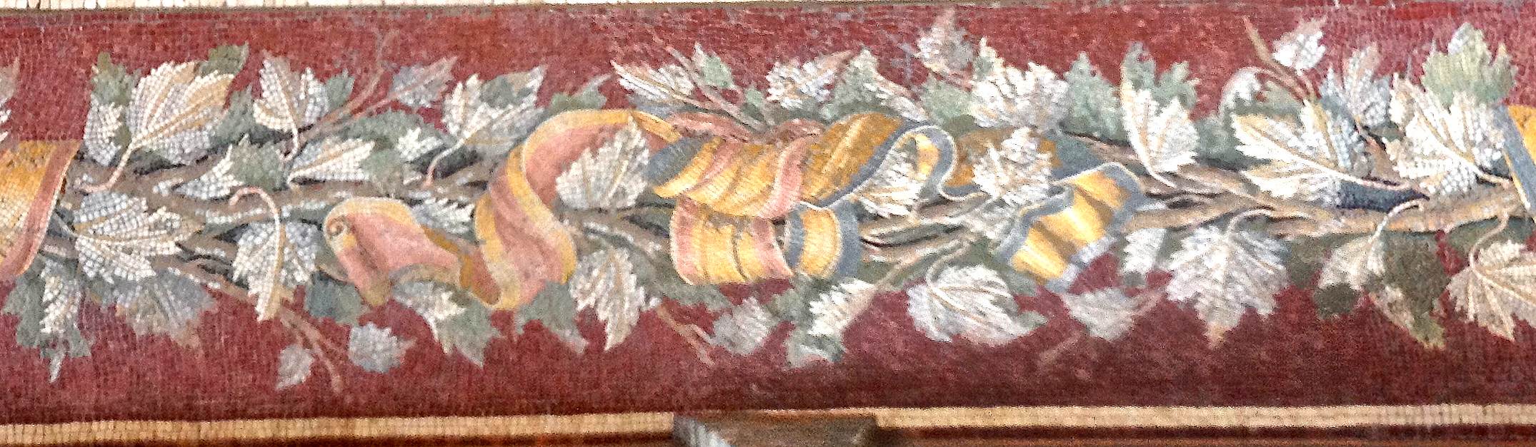 I quadretti sono in mosaico finissimo con tessere di 2-3 mm, quindi si tratta di preziosi emblemata in opus vermiculatum, probabilmente importati dall’oriente come il Mosaico delle Colombe rinvenuto nell’Accademia.