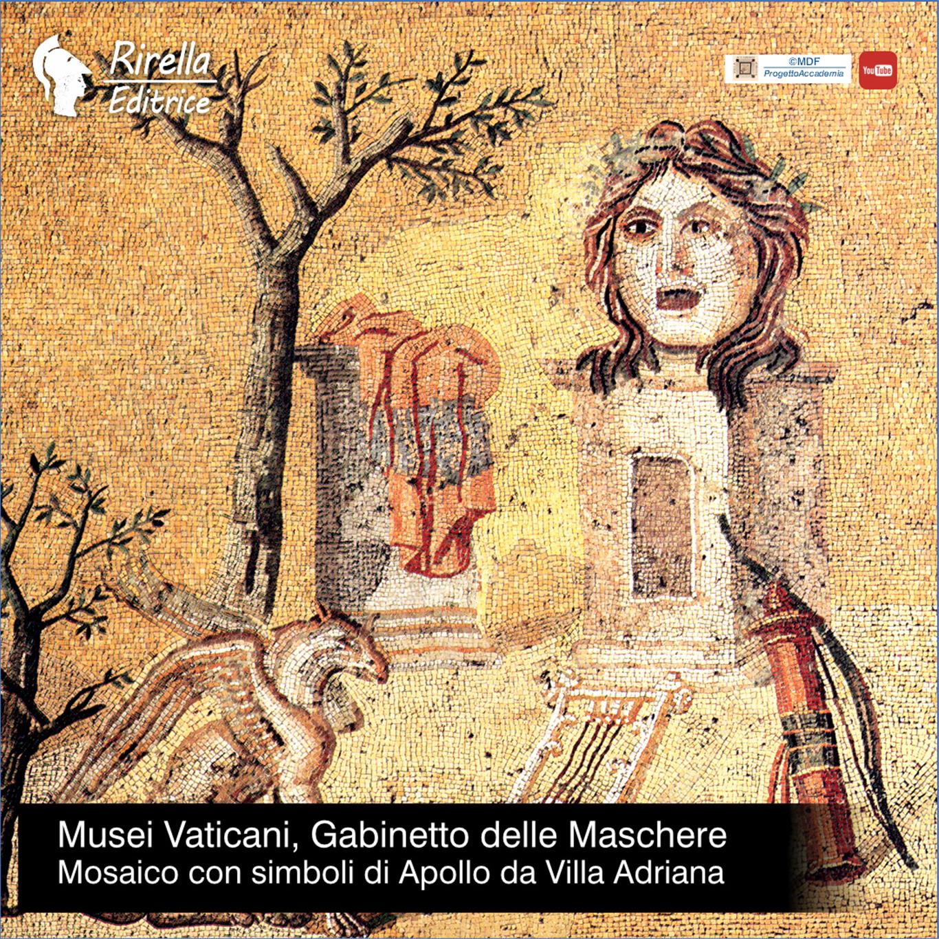 Il secondo mosaico ha una Maschera scenica coronata di alloro posta su un pilastro vicino al quale si vedono i simboli di Apollo: il Grifo, la Lira e la faretra con le frecce.