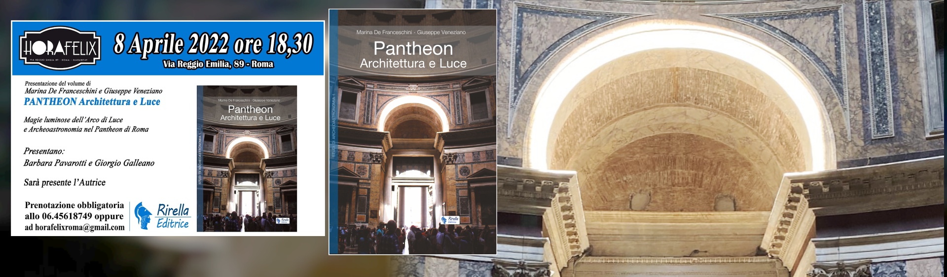 👉 ore 18:30: Presentazione del libro "Pantheon. Architettura e Luce", Caffè Letterario Horafelix, via Reggio Emilia 89, Roma.