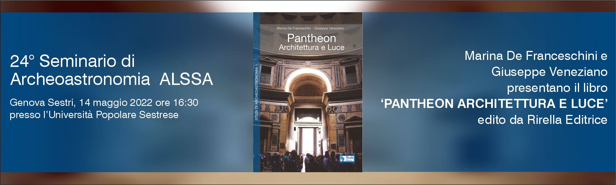 ✅ On May 14th at 4.30 pm Marina De Franceschini and Giuseppe Veneziano will present their latest book "Pantheon. Architecture and Light", in Italian and English, during the 24th Archaeoastronomy Seminar.