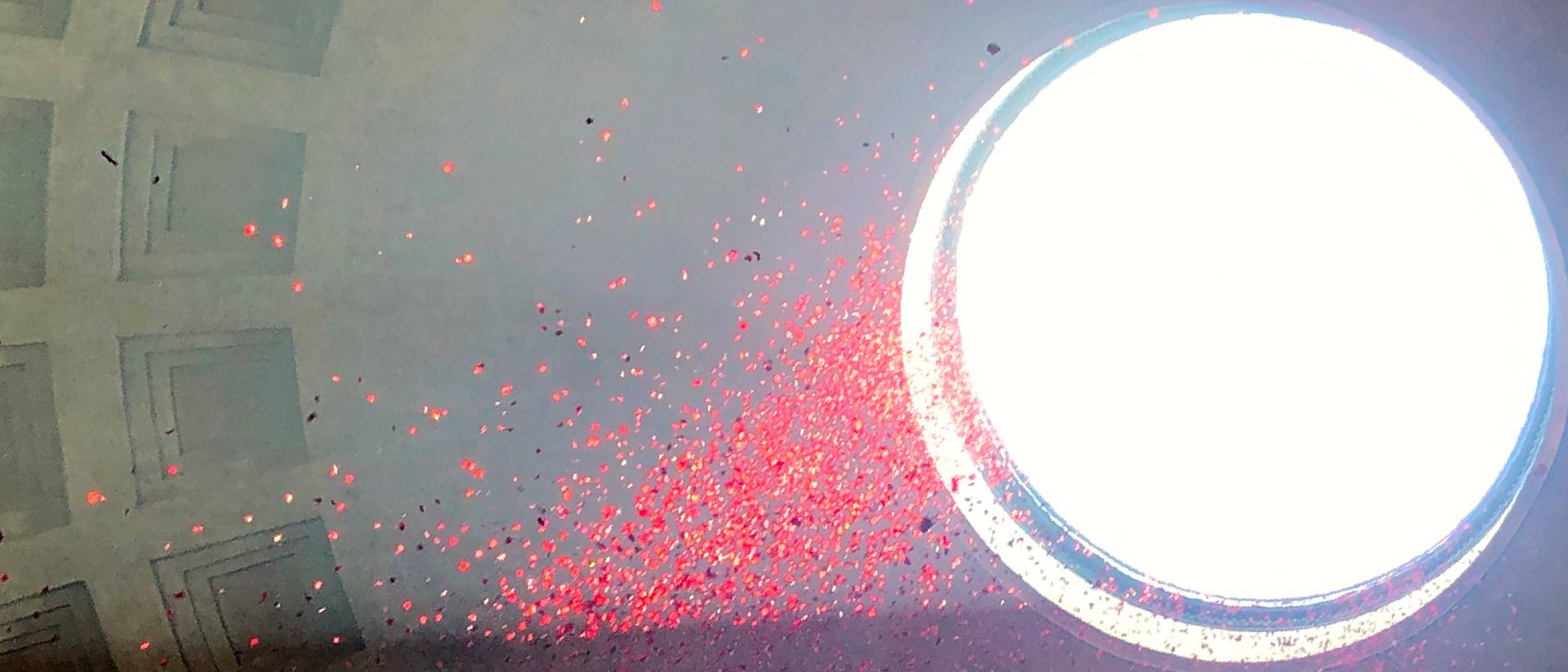 Last May 28th, as every year, the solemn Mass of Pentecost Sunday was celebrated in the Pantheon, particularly suggestive because it ends with the throwing of rose petals from the oculus of the dome.