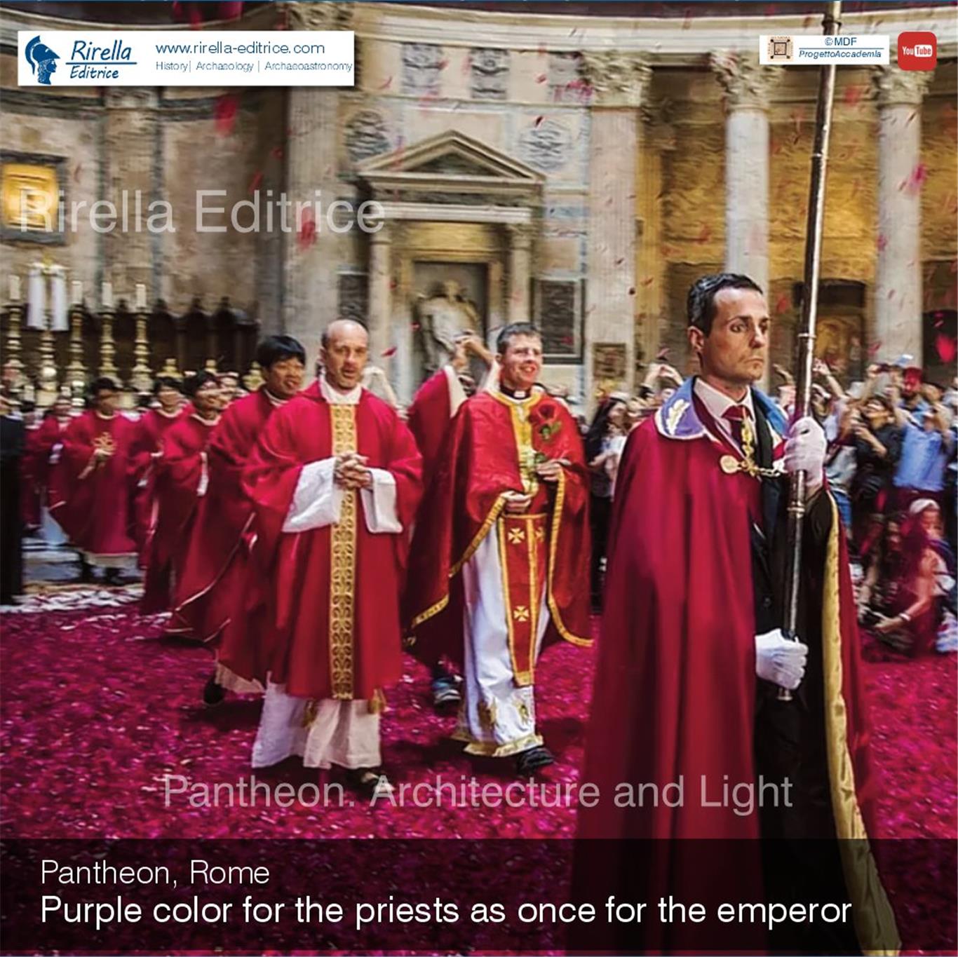 The symbols of the pagan cult were superimposed on those of the Christian cult, and also the symbols of power. This spectacular ceremony has the purple color of the petals and of the vestments of the priests, which hints to the Roman imperial symbols, to the purple color of the togas of the senators and the emperor, which was inherited from the vestments of the cardinals