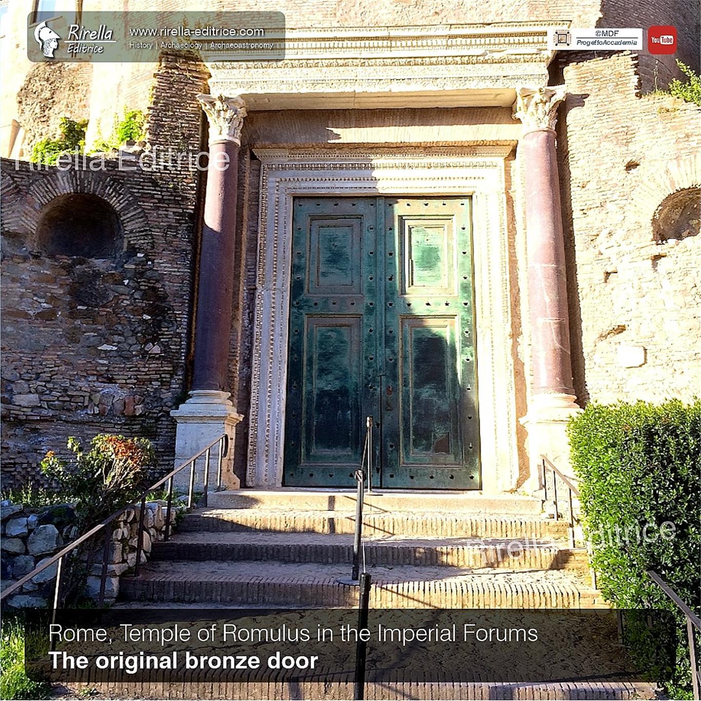 In all likelihood, one of the original bronze doors of the Mausoleum was reused, which must have been similar to that of the Pantheon or to the (later) one of the Temple of Romulus in the Imperial Forums.