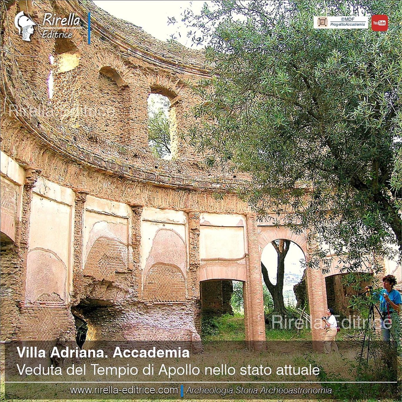 L'Accademia di Villa Adriana si trova ancor oggi in proprietà privata e non è mai stata aperta al pubblico. L'ambiente più importante è il Tempio di Apollo: una grandiosa sala circolare di 13m di diametro, un tempo coperta da una cupola. Rimane in piedi poco più di metà dell'edificio, i resto è crollato in epoca remota.