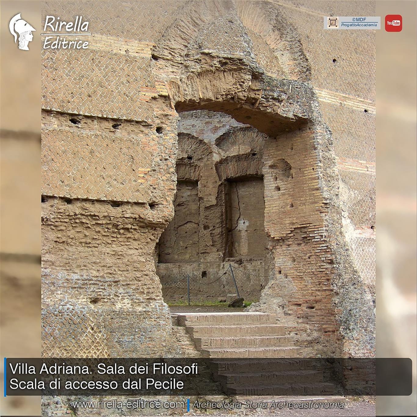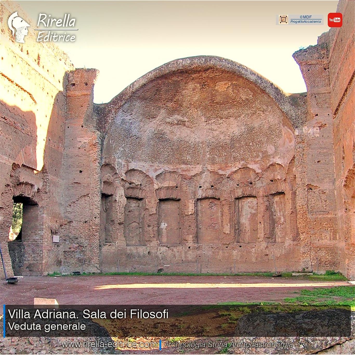La Sala dei Filosofi si trova in una posizione intermedia fra la parte "pubblica" della Villa, cioè la grande piazza del Pecile e quella "privata", ovvero il Teatro Marittimo ed il Palazzo imperale.