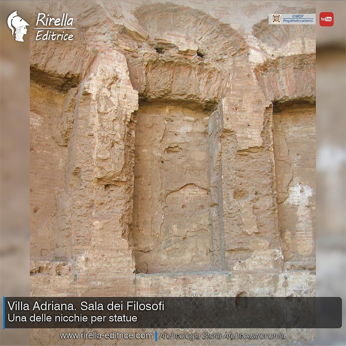 l'ipotesi è priva di senso perché le nicchie sono troppo alte da terra, m. 1,60, quindi scomode e di difficile accesso (con una scala a pioli?). Per provarlo è sufficiente un confronto con la piccola Biblioteca del Palazzo Imperiale sempre a Villa Adriana: lì le nicchie per gli armadi erano ad altezza d'uomo, comode ed accessibili.