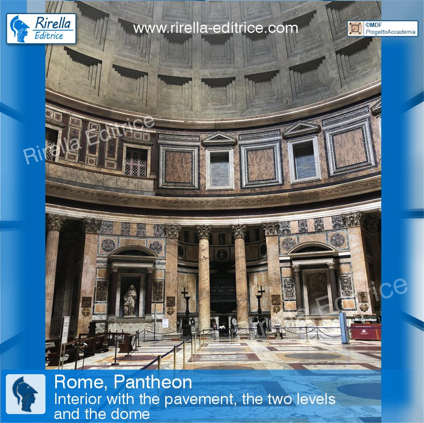 ✅ Inside the Pantheon, three different levels can be distinguished. The lower one, with large exedras and aediculae; then the upper level, called the 'attic' and at the top the coffers of the grandiose dome.
